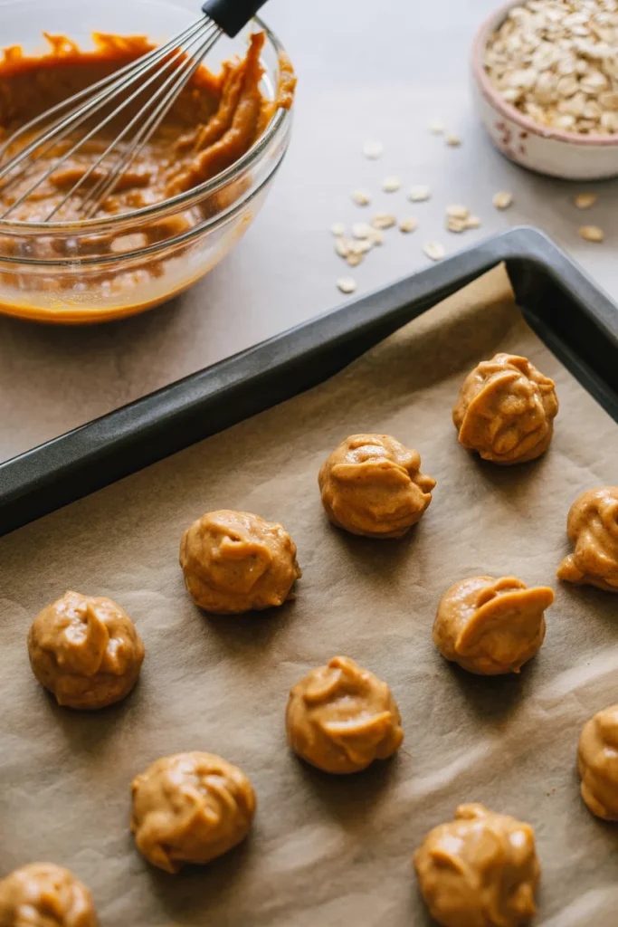 - Spoon tablespoon-sized mounds on the sheet and flatten slightly.