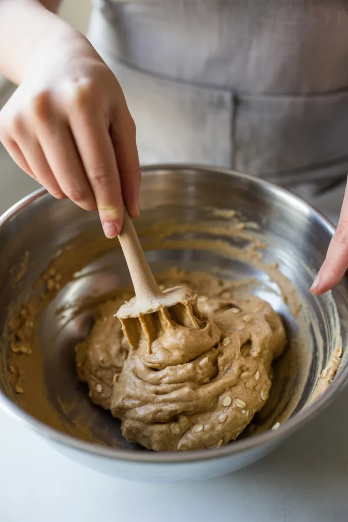 I mix until it forms a thick dough. If it feels sticky, I add more oats. If it’s too dry, a small splash of water fixes it.