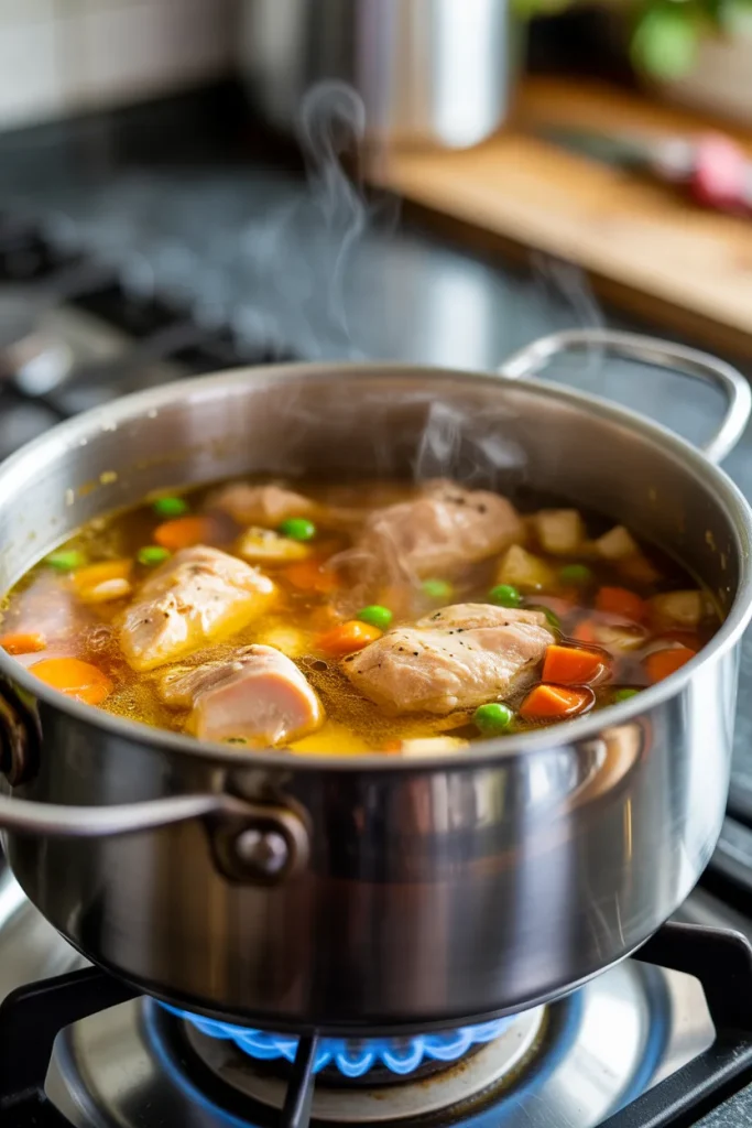 I add carrots and green beans along with water or broth to the pot. Then I let everything simmer until the vegetables become soft and easy to mash. This step helps improve digestibility, especially for sensitive dogs.