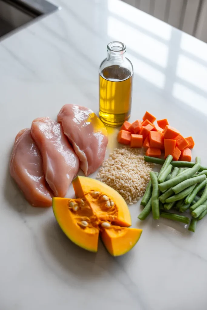 Chicken and pumpkin homemade dog food recipe with simple ingredients, health benefits, storage tips, and feeding guide for a balanced diet.
