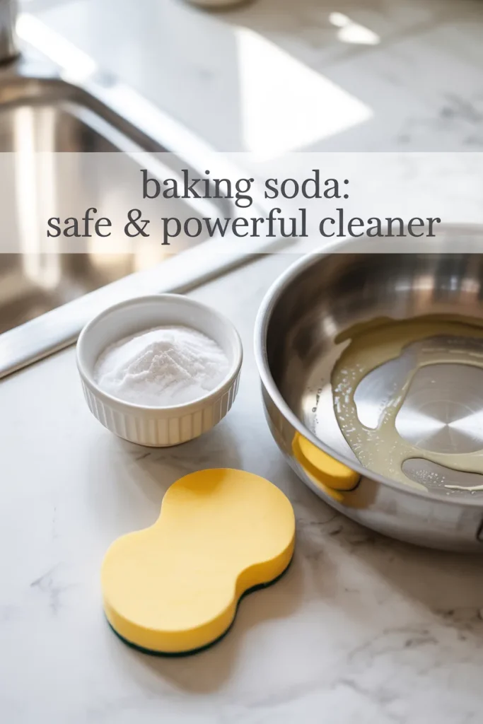 - Baking soda is my go-to safe cleaner