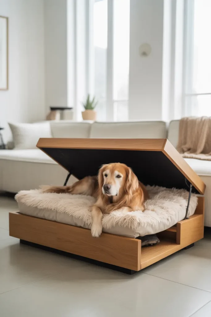 This is my go-to solution for small spaces. Furniture that doubles as a dog bed saves space and keeps things organized.