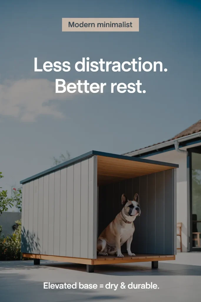 From my experience, modern minimalist dog houses work best when you want something clean, simple, and easy to maintain. These designs usually use neutral colors and straight structures that blend into outdoor spaces.