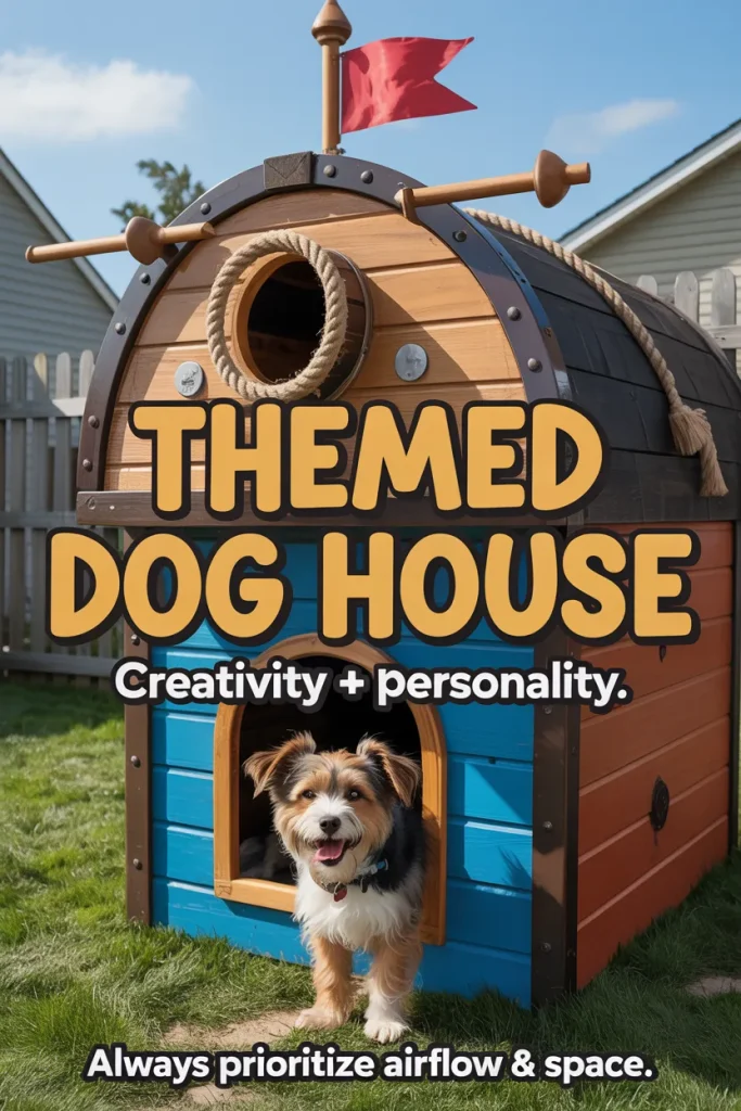 Themed dog houses are more about creativity and personality. I’ve seen designs like pirate ships, castles, and playful structures that match owner preferences.