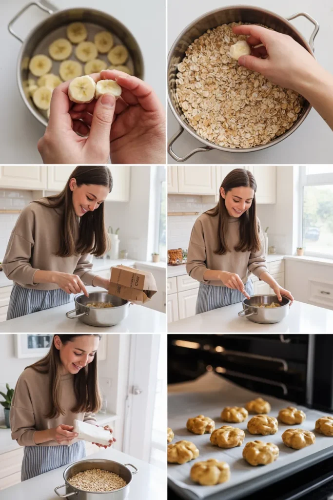 That’s it! No eggs, no flour, just pure, safe ingredients. Pro tip: ripe bananas not only add sweetness but also bind the oats naturally, eliminating the need for extra binders.