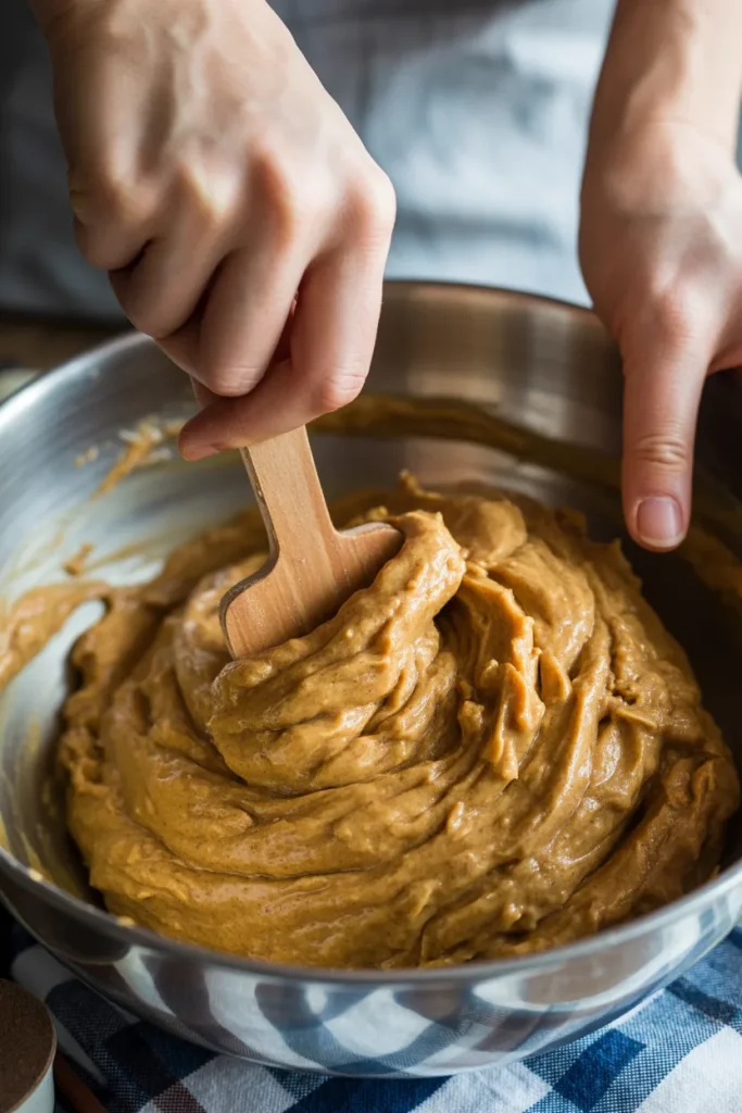 I combine pumpkin, peanut butter, and egg first, then slowly mix in oat flour. The dough should be soft but not sticky—similar to playdough.
