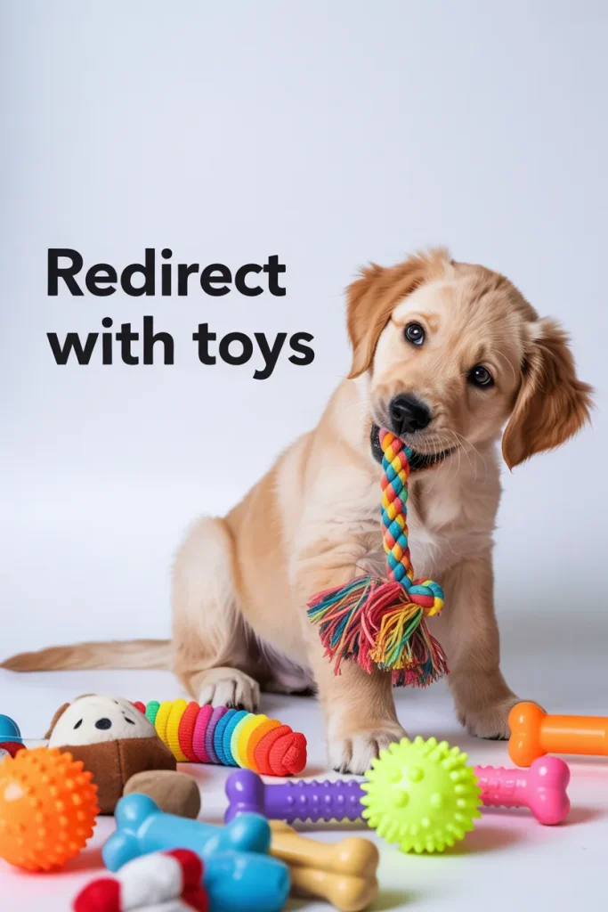 What worked best for me was using durable toys and even freezing some to soothe their gums. When my puppy chose the toy, I praised them right away.