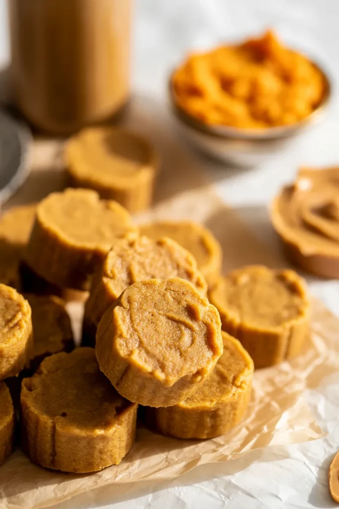 Across these recipes, I use peanut butter as the main flavor base because most dogs respond strongly to it, while ingredients like pumpkin and sweet potato improve digestion and texture. I also include both baked and no-bake options so I can choose depending on time and convenience. Every recipe is portion-controlled and can be stored in the fridge or freezer for longer use.