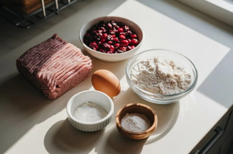 I place the turkey, cranberries, coconut flour, and egg into a bowl and mix until the texture feels even. If it feels too wet, I add just a touch more coconut flour until it holds together comfortably.